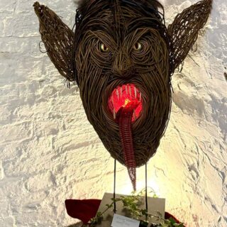 This figure was commissioned by Great Ayton Parish council ,North Yorkshire to commemorate the civilians who went to war.It was mounted on a chunck of local Ironstone and set on the village green. The willow sculpture was made of various different coloured willows on a steel frame.
